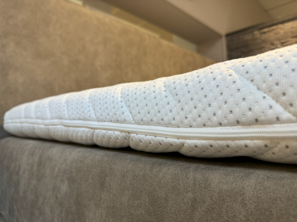 De topper van de boxspring Fat Windsor is gemaakt van een hoogwaardige soepele hybride koudschuim! Het topmatras is ook de perfecte combinatie om goed vocht op te nemen en af te voeren. Hierdoor is het ideaal voor slapers die het snel te warm hebben. Deze topper is heerlijk soepel, maar geeft super ondersteuining. De topper heeft een hoogte van circa 6 cm.