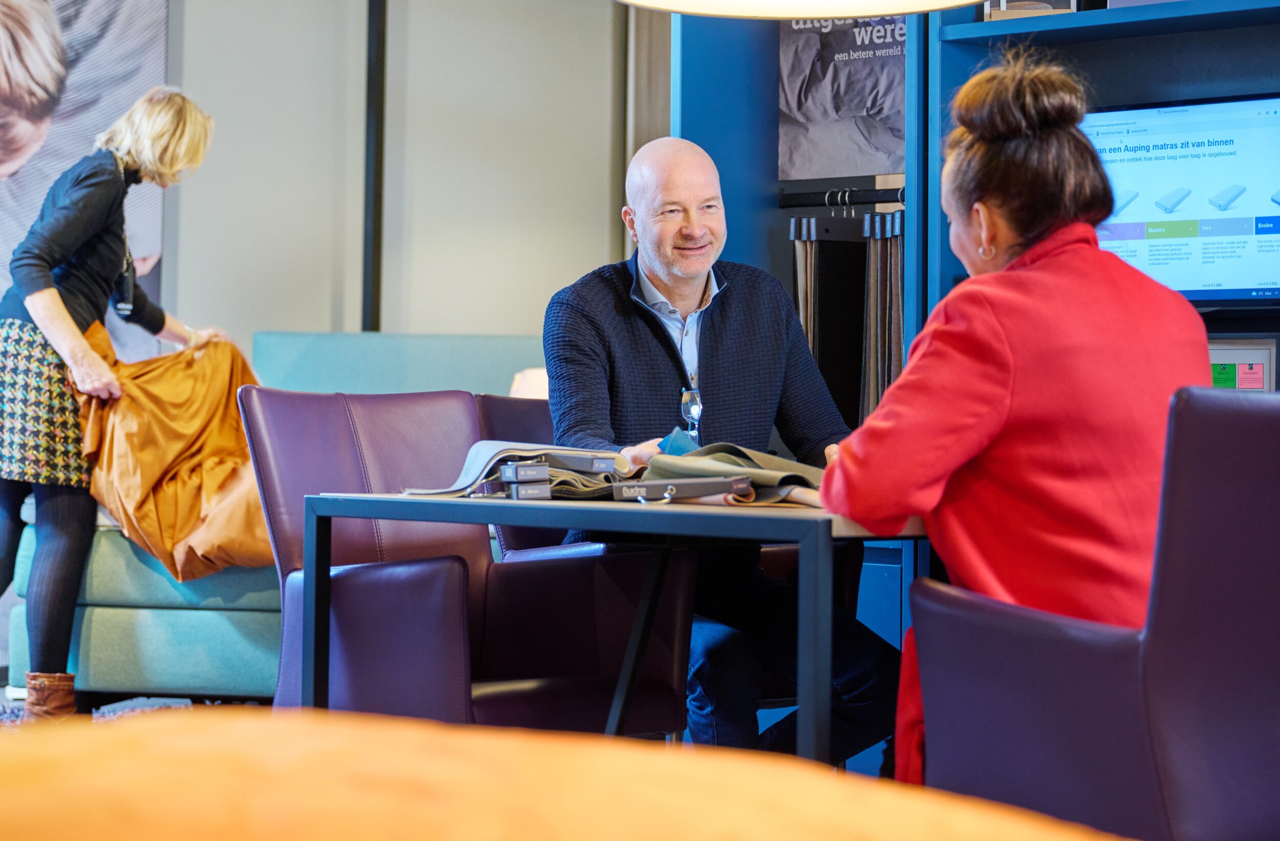 Alles goed uitgelegd tussen de verschillende bedden en matrassen/toppers. Kleurenstaal mochten we even meenemen naar huis om de juiste kleur te betalen. Super bezorgers die ons nieuwe bed in elkaar hebben gezet en alles hebben uitgelegd hoe het werkt.