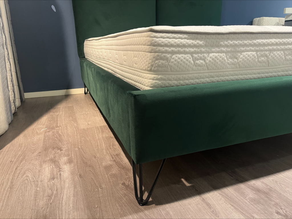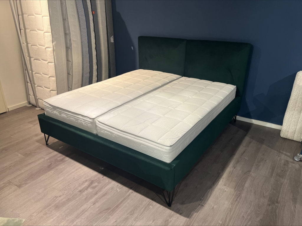 Maak kennis met het stijlvolle Ledikant Air in groen velours, waar comfort en design samenkomen. Het elegante hoofdbord geeft een luxueuze uitstraling aan uw slaapkamer en zorgt voor een sfeervol en rustgevend geheel. Een eyecatcher die perfect past in elke moderne slaapkamer.